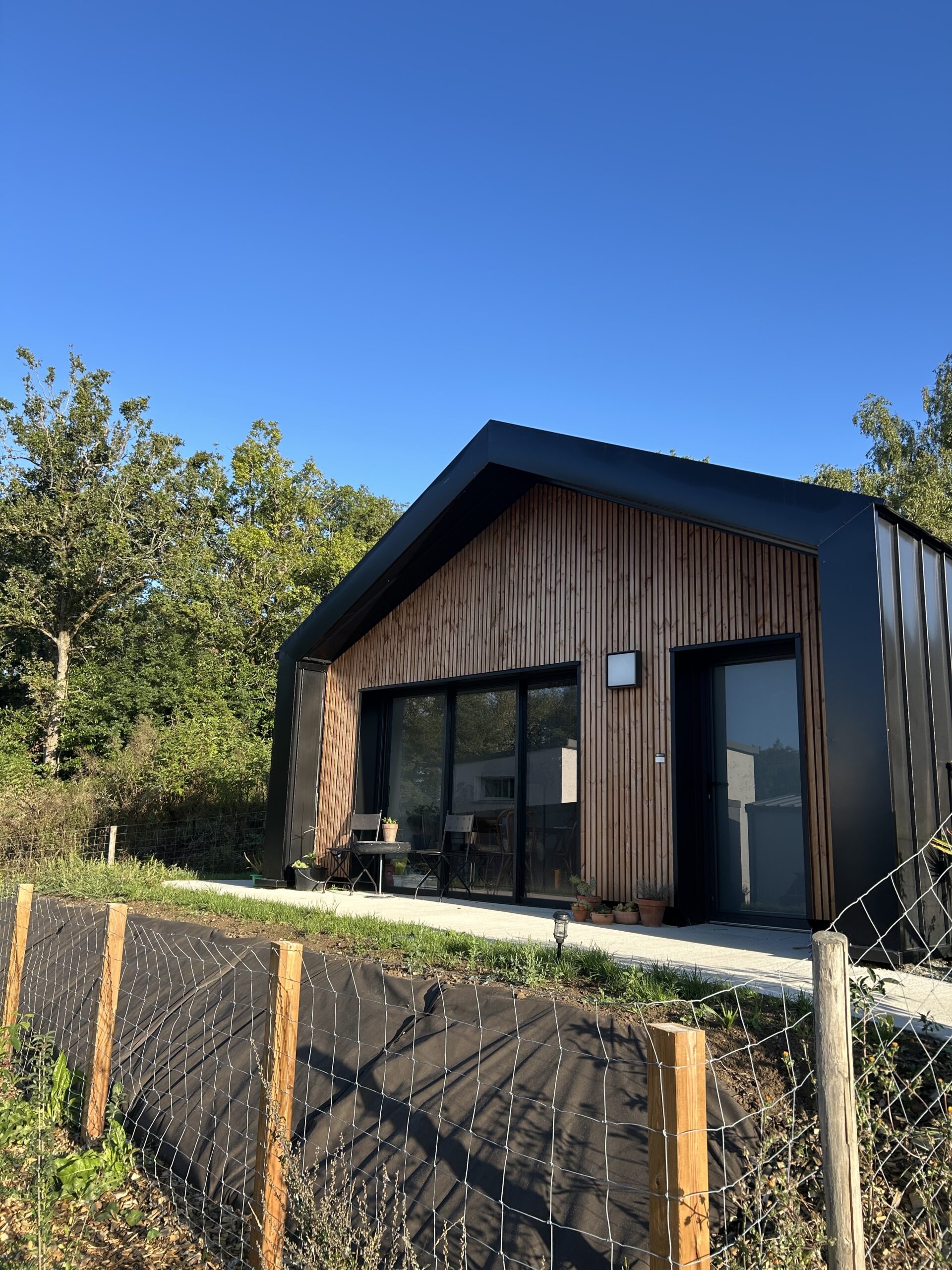 Nous livrons, posons et finalisons l'ossature : isolation extérieure et intérieure et pose du bardage.